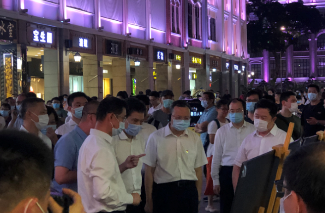 9月5日,國家商務(wù)部部長鐘山在廣州市委書記張碩輔、廣州市市長溫國輝、越秀區(qū)委書記王煥清、越秀區(qū)區(qū)長蘇佩等市區(qū)各級領(lǐng)導(dǎo)的陪同下,視察北京路步行街改造提升工程項目。