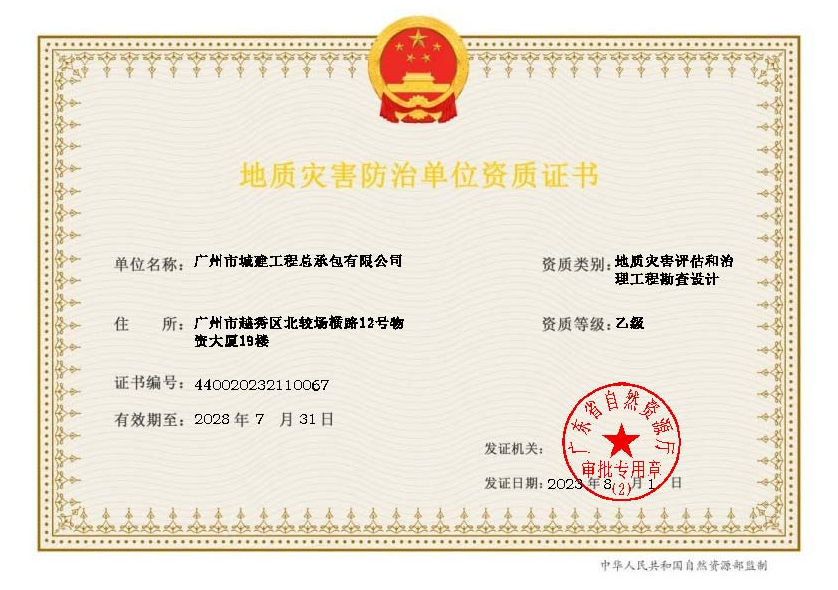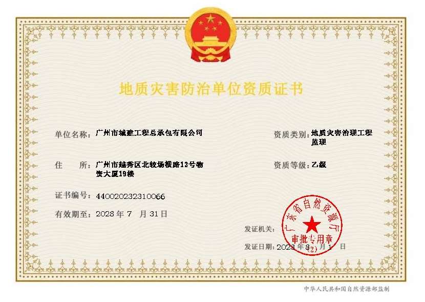 2023年8至10月,公司成功獲批地質(zhì)災(zāi)害治理工程施工乙級(jí)、監(jiān)理乙級(jí)、地質(zhì)災(zāi)害評(píng)估和治理工程勘查設(shè)計(jì)乙級(jí)資質(zhì)。