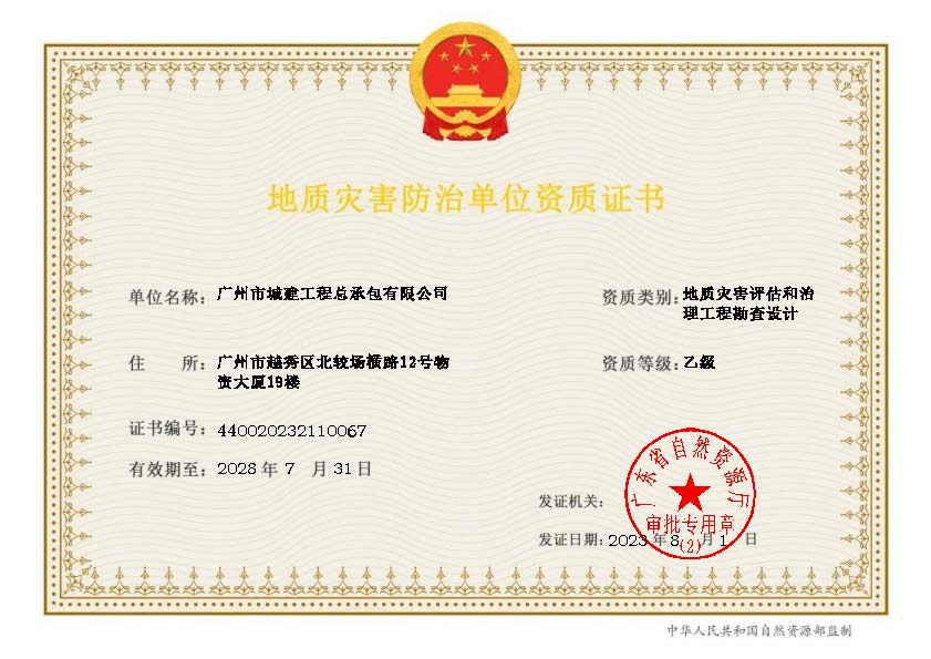 地質(zhì)災(zāi)害評估和治理工程勘查設(shè)計(jì)乙級資質(zhì)