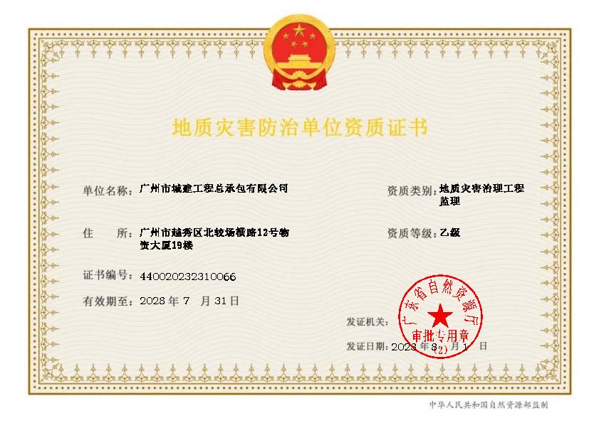 地質(zhì)災(zāi)害治理工程監(jiān)理乙級資質(zhì)