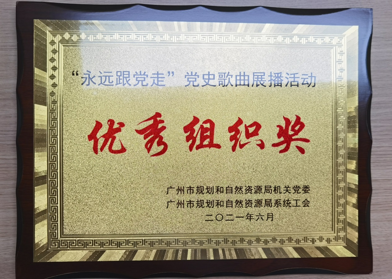 在慶祝中國(guó)共產(chǎn)黨成立100周年之際,廣州市規(guī)劃和自然資源局機(jī)關(guān)黨委和局工會(huì)在系統(tǒng)內(nèi)開(kāi)展“永遠(yuǎn)跟黨走”黨史歌曲展播活動(dòng)。我公司積極響應(yīng),選送的《沒(méi)有共產(chǎn)黨就沒(méi)有新中國(guó)》MV獲得“優(yōu)秀組織獎(jiǎng)”。